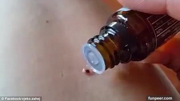 ▼在片中能夠看到這名女網友將自己手上發現的壁蝨滴了薄荷油後,沒想到短短約20秒時間壁蝨就離開她的皮膚了!