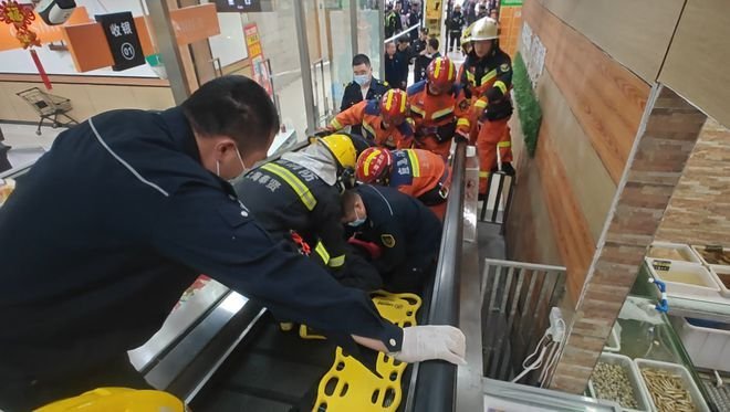 綜合陸媒報導,從監視器畫面可以看到,女子在搭乘時,電扶梯突然空了一階,讓她直接踩空,腿部也被捲入機器內,但扶梯仍在運行,只能哭喊求助。下方女子見狀立即按鈕暫停,卻沒有反應,幸虧上方男子逆行再次按下,才停止扶梯,但女子的腰部以下已經被捲入機器中,劇痛下動彈不得。消防員接獲通報後到場,發現扶梯內部包含傳動軸、導軌、煞車和鏈條等系統,結構極其複雜,讓救援行動一度停滯。