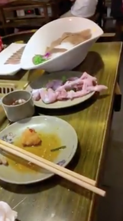 沒想到店員將去好皮、完整處理好的田雞肉送到桌上後,下一秒眼前卻出現了可怕不已的景象...