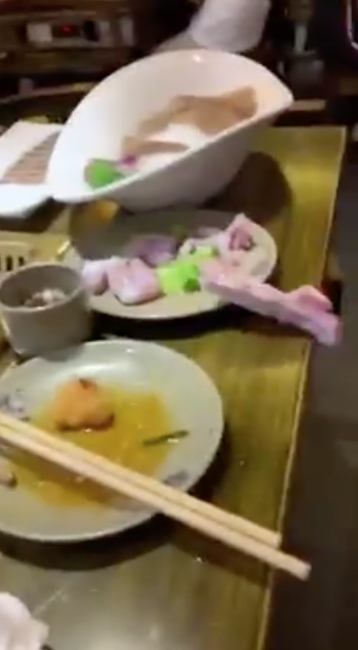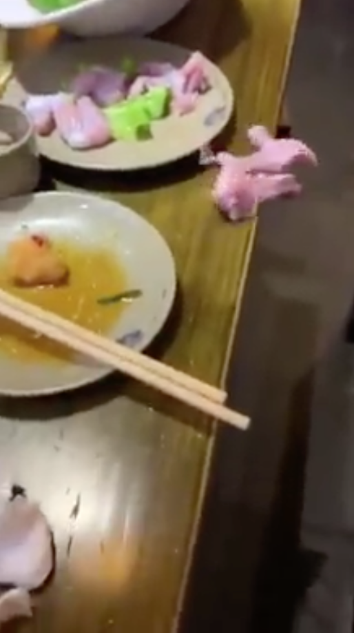 影片中可見,一名女子跟朋友一起到火鍋店用餐,她們點了一道「剝皮田雞肉」嘗鮮,