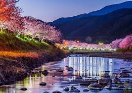 藍天 x 粉櫻 x 清澈河水的完美組合,讓人忍不住狂拍 📸📸📸~👫