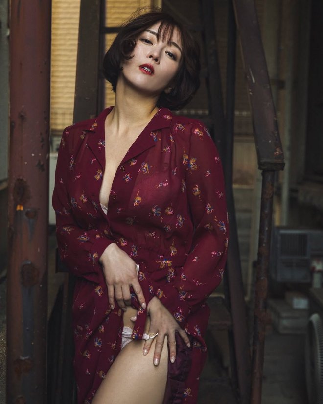 再搭配她那種若有似無的熟女人設,不管是穿浴衣、貼身禮服,還是純白內衣,氣場都剛剛好卡在性感與文青的交界點。