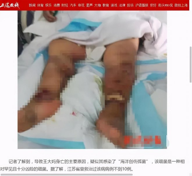 海洋創傷弧菌的毒性很強,可引起傷口感染和原發性敗血症,患者初期會出現發燒、紅斑、皮膚髮黑等癥狀。