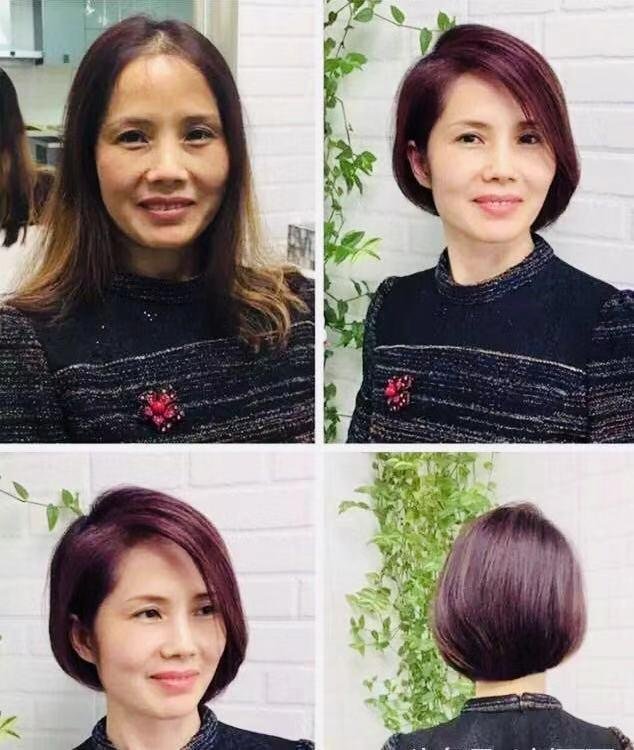 左邊這種就是顯老氣的鮑伯頭,歲數小的女孩留起來很好看,但中年女姓剪這種髮型,頭髮太直、劉海太平不適合中年女性,右邊換完髮型後、時尚年輕了很多。