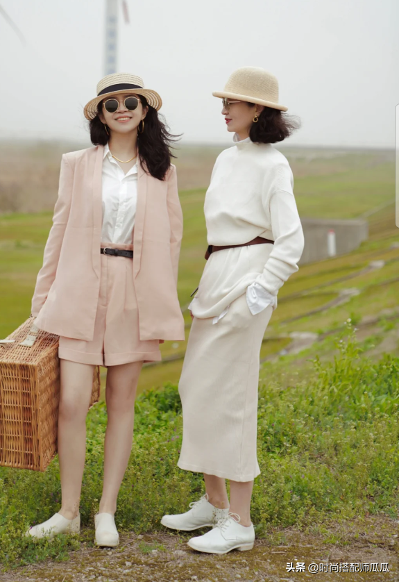 同時呈現上短下長比例感的時候,也建議大家能夠利用顏色進行一定的分割,例如經典的黑白或者是不同色相的組合搭配,在視覺上的強調能力是非常明顯的,本身帶著一些小個子或者是55身形的女性,記得一定要這樣搭配起來喲。