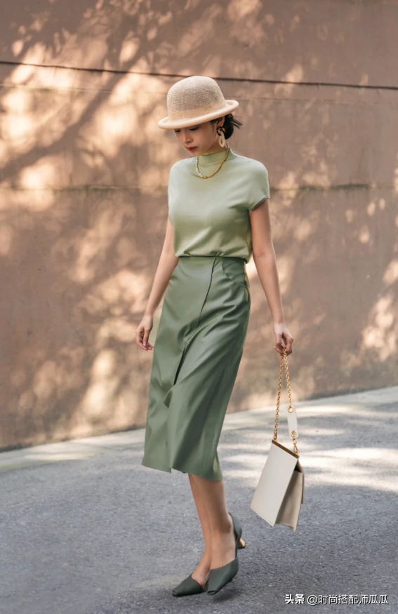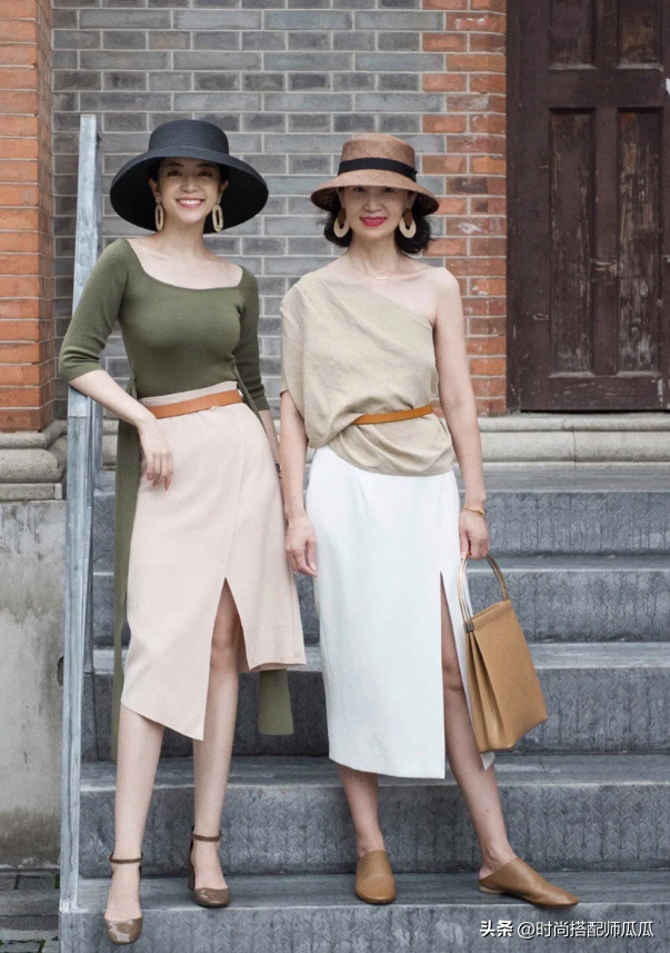 如果大家是輪到中年或者是老年階段腿型開始走樣,腿型的狀態不太流暢好看的狀態下,那麼則推薦大家將直筒系列設計的煙管裙進行優選搭配,整個下半身的視覺輪廓感非常的明顯,以及被修飾的利落十足。