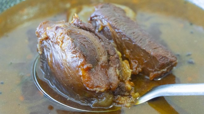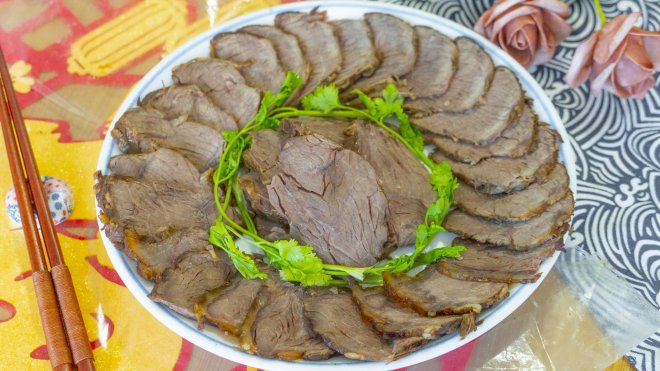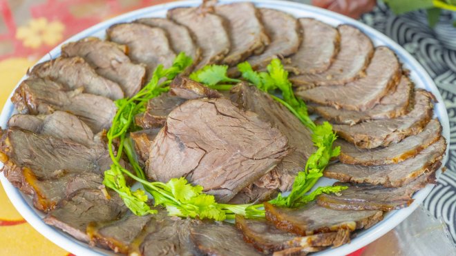 4、時間到了后先把牛肉撈出來,放涼後放冰箱冷藏2個小時,切的時候不容易散開。
