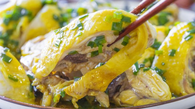 8、直接澆到雞腿上,好吃的蔥油雞就做好了。