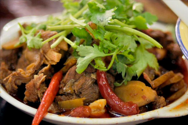 5、等到羊肉酥爛的時候,這道紅燜羊肉就做得差不多了,稍微加入些澱粉收汁,撒上蔥花香菜即可食用了。