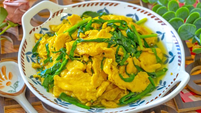 食材:韭菜1把、4個雞蛋、10克澱粉、30克清水