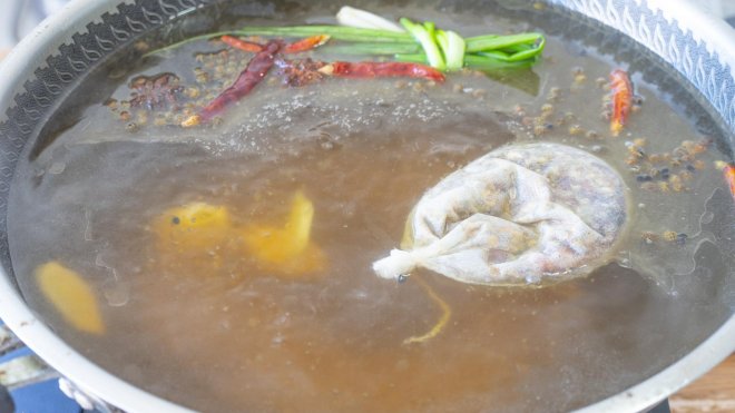 4、煮開后撇去浮沫,然後繼續煮15分鐘。