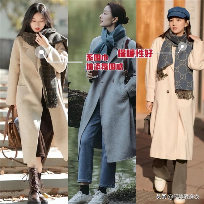 [一]大衣搭配圍巾,比普通的穿搭更時髦和保暖