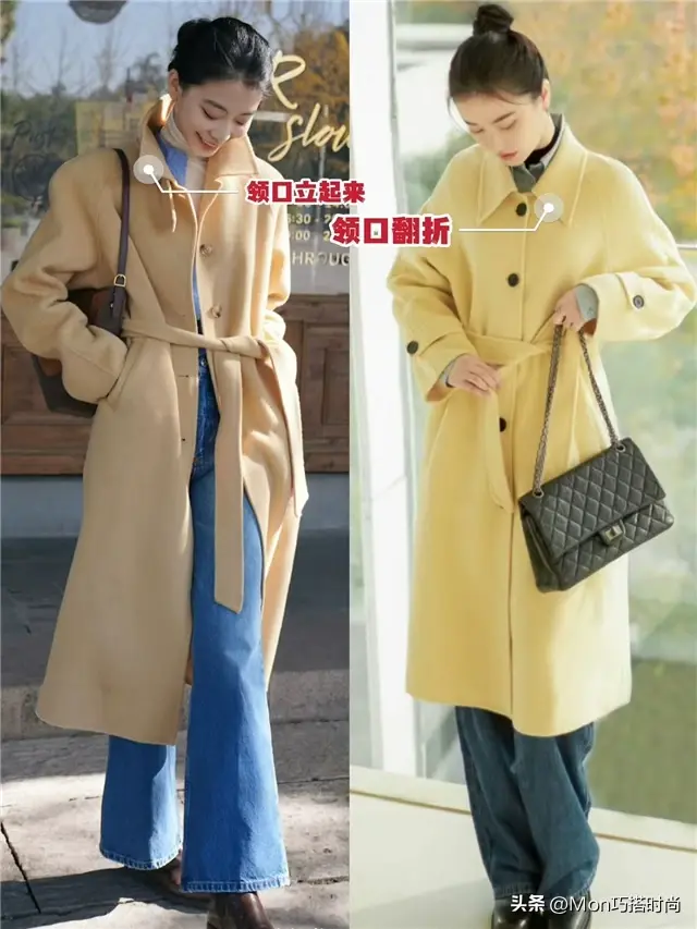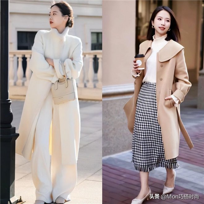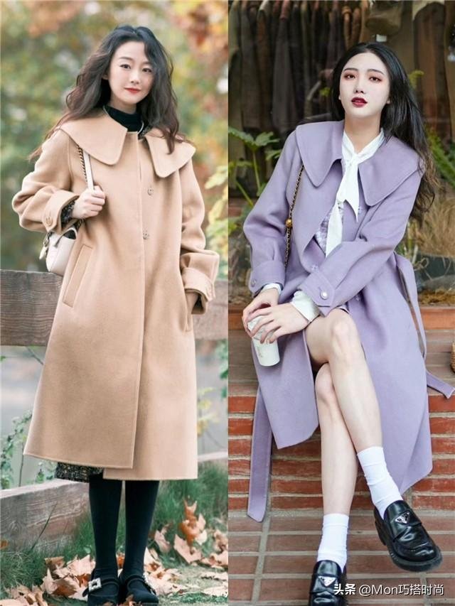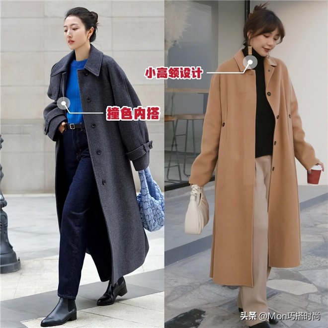 圓領的大衣沒有領口,比較可愛復古,而大翻領的大衣領子比較寬大,自帶氣場,奶奶大衣都是這種小翻領的設計,這種小小的領口設計顯得更加的精緻巧妙,同時又有一定的設計感,不會像傳統的大衣搭配在身上顯得過於誇張。