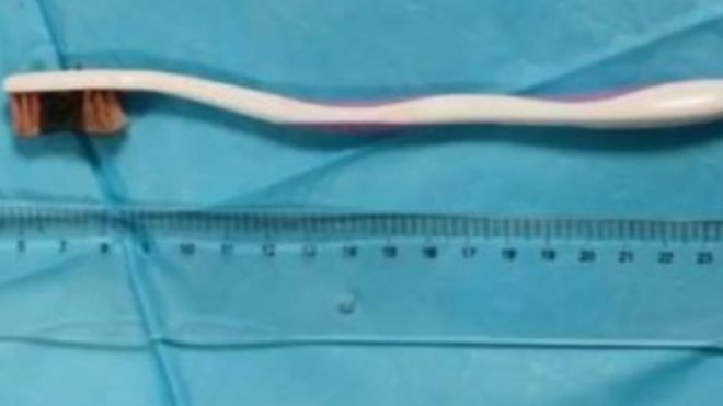 竟然是把牙刷吞進肚子裡⋯⋯還好最後平安無事。