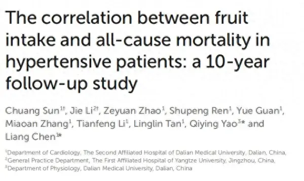 來自大連醫科大學第二附屬醫院、長江大學第一臨床醫學院等多家機構的研究人員,基於美國國家健康和營養檢查調查(NHANES)數據,分析了水果種類和消費頻率對高血壓患者死亡風險的影響。研究納入的水果包括蘋果、梨、香蕉、菠蘿和葡萄;消費頻率則被分為每月少於1次、每月1~3次、每周1~2次、每周3~6次、每天1次或更多。該研究隨訪10年,涉及2480名高血壓患者。