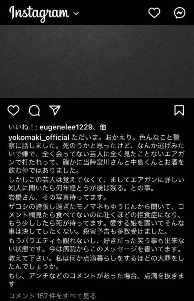 直播事故後,真木陽子又在IG上發全黑圖,表示已經跟警察談完了,「我想說我要死了,但是我不想要像在逃避一樣,我被一個從沒見過面的諧星,用從沒見過的空氣槍打中了」,也提到看到諧星「好萊塢雜魚師匠」模仿自己後,就吃不下東西,「厭食症到想吐的地步,再過一會兒就死了,我真不想留下心愛的女兒就走。我還收到多起死亡威脅」。
