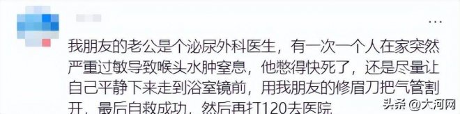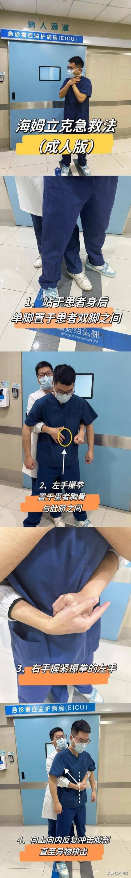 西安交通大學附屬第二醫院急診科副主任醫師高彥霞提醒,遇到這種情況,在只有一人的情況下,如果患者比較清醒,可以找個有椅背的椅子,把椅背往腹部斜著往上沖,「相當於腹部有一個斜著往上沖的力,用胸腔內壓力把氣管的東西給衝擊出來,這是一個自救的辦法。」
