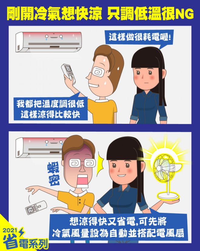 過去《台電電力粉絲團》在粉專說明,每開一次冷氣,壓縮機運轉耗電量就是1.3度,因此建議民眾如果離開時間不長,可以選擇調成送風模式或調高溫度,不要開開關關造成耗能。另外也建議不要一開始溫度就調很低,反而將高功率運轉時間拉長又耗電,建議可以將溫度維持在26至28度,搭配電風扇或循環扇讓空氣循環,都有助於省下荷包。